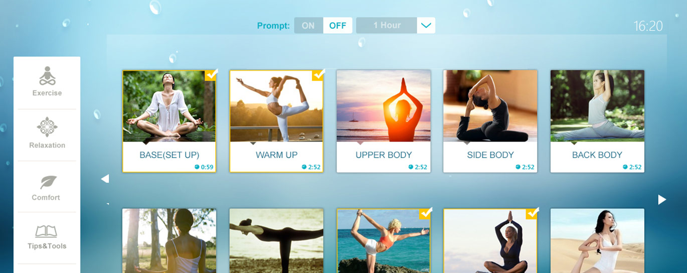 Optimize your passenger's comfort during their flight to alleviate their worries. Soft music and video, followed by the teachings and explanations of a yoga master, let passengers enjoy the beauty of yoga in the clouds.